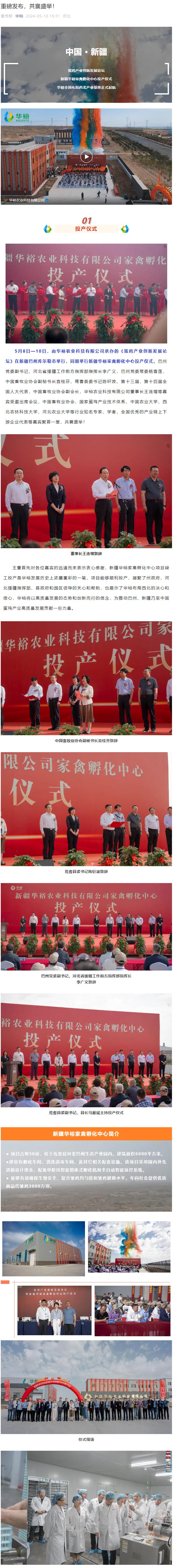 新疆華裕家禽孵化中心正式投產(chǎn)