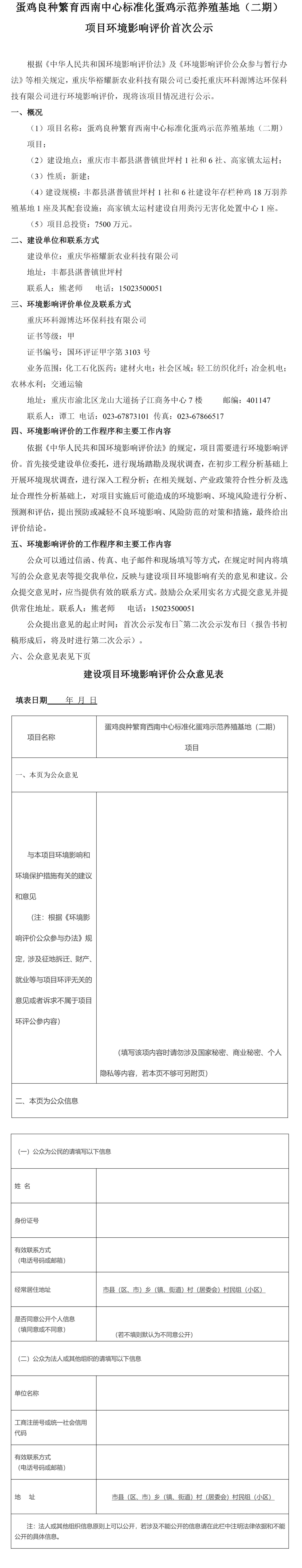 蛋雞良種繁育西南中心標(biāo)準(zhǔn)化蛋雞示范養(yǎng)殖基地(二期) 項目環(huán)境影響評價首次公示